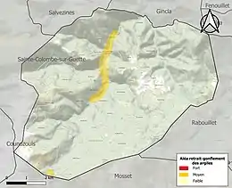 Le retrait-gonflement des sols argileux est susceptible d'engendrer des dommages importants aux bâtiments en cas d’alternance de périodes de sécheresse et de pluie. 2,5 % de la superficie communale est en aléa moyen ou fort (75,2 % au niveau départemental et 48,5 % au niveau national). Sur les 185 bâtiments dénombrés sur la commune en 2019, 179 sont en aléa moyen ou fort, soit 97 %, à comparer aux 94 % au niveau départemental et 54 % au niveau national. Une cartographie de l'exposition du territoire national au retrait gonflement des sols argileux est disponible sur le site du BRGM[31],[Carte 3].