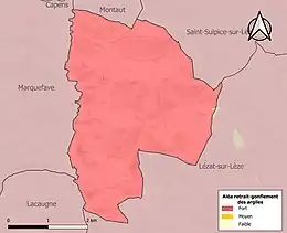 Le retrait-gonflement des sols argileux est susceptible d'engendrer des dommages importants aux bâtiments en cas d’alternance de périodes de sécheresse et de pluie. La totalité de la commune est en aléa moyen ou fort (88,8 % au niveau départemental et 48,5 % au niveau national). Sur les 75 bâtiments dénombrés sur la commune en 2019, 75 sont en aléa moyen ou fort, soit 100 %, à comparer aux 98 % au niveau départemental et 54 % au niveau national. Une cartographie de l'exposition du territoire national au retrait gonflement des sols argileux est disponible sur le site du BRGM[25],[Carte 3].