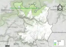 L'occupation des sols de la commune, telle qu'elle ressort de la base de données européenne d’occupation biophysique des sols Corine Land Cover (CLC), est marquée par l'importance des territoires agricoles (60,5 % en 2018), une proportion identique à celle de 1990 (60,9 %). La répartition détaillée en 2018 est la suivante : forêts (39,5 %), terres arables (26 %), prairies (24,1 %), zones agricoles hétérogènes (10,4 %)[21]. L'évolution de l’occupation des sols de la commune et de ses infrastructures peut être observée sur les différentes représentations cartographiques du territoire : la carte de Cassini (XVIIIe siècle), la carte d'état-major (1820-1866) et les cartes ou photos aériennes de l'IGN pour la période actuelle (1950 à aujourd'hui)[Carte 2].