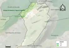 L'occupation des sols de la commune, telle qu'elle ressort de la base de données européenne d’occupation biophysique des sols Corine Land Cover (CLC), est marquée par l'importance des forêts et milieux semi-naturels (86,5 % en 2018), une proportion sensiblement équivalente à celle de 1990 (86,4 %). La répartition détaillée en 2018 est la suivante : forêts (46,1 %), milieux à végétation arbustive et/ou herbacée (40,4 %), zones agricoles hétérogènes (7,4 %), cultures permanentes (6,1 %)[18]. L'évolution de l’occupation des sols de la commune et de ses infrastructures peut être observée sur les différentes représentations cartographiques du territoire : la carte de Cassini (XVIIIe siècle), la carte d'état-major (1820-1866) et les cartes ou photos aériennes de l'IGN pour la période actuelle (1950 à aujourd'hui)[Carte 1].