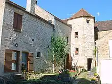 - au 22 grande rue, grande demeure avec une cour intérieure pavée et une tour ronde