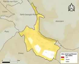 Le retrait-gonflement des sols argileux est susceptible d'engendrer des dommages importants aux bâtiments en cas d’alternance de périodes de sécheresse et de pluie. 82,9 % de la superficie communale est en aléa moyen ou fort (52,8 % au niveau départemental et 48,5 % au niveau national). Sur les 253 bâtiments dénombrés sur la commune en 2019, 230 sont en aléa moyen ou fort, soit 91 %, à comparer aux 70 % au niveau départemental et 54 % au niveau national. Une cartographie de l'exposition du territoire national au retrait gonflement des sols argileux est disponible sur le site du BRGM[19],[Carte 2].