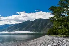 Vue des montagnes dominant le lac Baïkal dans la réserve naturelle Baïkal-Léna.