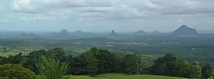 Les monts Glass House sont un groupe de onze collines qui se dressent sur la plaine côtière de la Sunshine Coast, au Queensland, en Australie. La plus haute montagne est le mont Beerwah (556 mètres d'altitude) mais le plus identifiable de tous est le mont Tibrogargan qui apparaît comme un singe géant assis au bord du chemin et regardant la mer.
