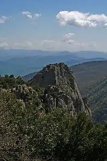 Les endroits escarpés et les gorges profondes sont peuplées par le monticole merle-bleu, le très rare monticole merle-de-roche et l'hirondelle de rochers[2].