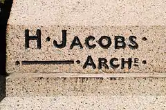 Le socle en granit porte, sur le côté droit, la signature de l'architecte Henri Jacobs.