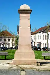 Le monument est une stèle commémorative en granit rose d'environ 4m de haut, dessinée par Henri Jacobs.