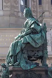 Le programme de contenu du monument est venu d 'Alfred von Arneth, directeur de la maison impériale, de la cour et des archives de l'État. La monarque elle-même est assise sur son trône au sommet, avec un sceptre dans la main gauche et la Sanction Pragmatique, l'État et le traité constitutionnel qui lui ont permis, en tant que femme, de régner sur les terres héréditaires des Habsbourg et en Hongrie, avec sa main droite saluant le personnes. Quatre figures féminines sont assises sur la corniche autour du trône, incarnations allégoriques des vertus cardinales de justice, de force, de douceur et de sagesse.