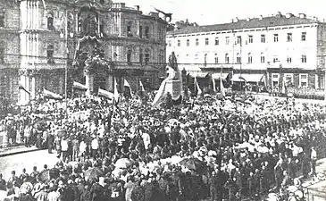Avec le début de la révolution ukrainienne, au printemps 1917, des processus rapides de formation de l'État et la montée du mouvement ukrainien de libération nationale commencèrent en Ukraine et à Kiev en particulier. Dans ces conditions, le monument à Stolypine sur la place centrale de Kiev était vu comme un symbole vivant du régime autocratique russe détesté par les Ukrainiens.