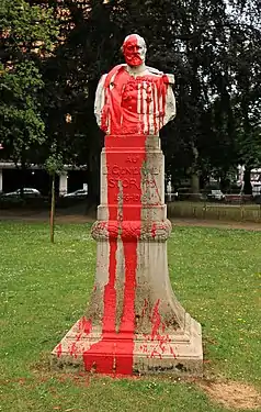 Le 13 juin, le buste du général Storms est aspergé de peinture rouge[10],[11].