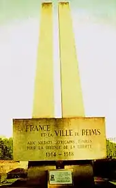 Le , une stèle en granit est inaugurée avec une simple inscription : « La Ville de Reims à ses défenseurs. Les troupes coloniales et les anciens combattants coloniaux à leurs morts[8] ».