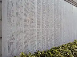 Le monument se présente sous la forme d'une succession de trois plaques de calcaire de Corgoloin (Côte-d’Or) mesurant 2,80 mètres de haut sur 7,52 mètres de large, le tout totalisant une longueur d’environ 23 mètres. Les 5 832 noms sont inscrits, par ordre alphabétique des patronymes (auxquels sont adjoints les initiales de leurs prénoms), sont répartis sur pas moins de 72 colonnes de 2,80 mètres de hauteur[1]. Les trois plaques sont séparées entre elles par deux stèles dédiées, l'une aux soldats nantais morts durant le Seconde Guerre mondiale, l'autre à ceux tombés au cours des opérations en Afrique française du Nord (AFN) entre 1952 et 1962, notamment durant la guerre d'Algérie.