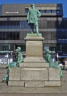 La statue est l'œuvre du sculpteur August Bauer et la conception du monument de Johannes Röttger. Le monument est solennellement inauguré le 10 mai 1899 (moins d'un an après la mort du chancelier) sur l'Alleestraße (aujourd'hui Heinrich-Heine-Allee), devant la façade principale de l'ancienne galerie d'art de Düsseldorf (de). Aujourd'hui le monument se trouve depuis 1961 sur la Martin-Luther-Platz, où il est à côté du monument de Guillaume Ier.