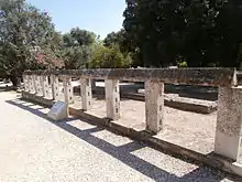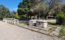Fouilles Le monument a été découvert lors des fouilles menées en 1931 et 1932 par l'École américaine d'études classiques d'Athènes. La restauration partielle de l'enceinte a été achevée en 1951, tandis que de nouvelles investigations ont été menées en 1967[4].