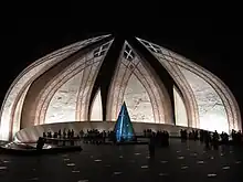 Le monument a la forme des pétales d'une fleur en train d'éclore. Sur les murs intérieurs de ces pétales sont dessinés les contours du fort de Lahore, de la Mosquée Royale, de la passe de Khyber et du Minar-e-Pakistan. Le monument s'ouvre sur une terrasse en marbre qui offre une vue plongeante sur la ville d'Islamabad[2]. Les quatre pétales principaux représentent les quatre provinces (Baloutchistan, Khyber Pakhtunkhwa, Pendjab et Sind) alors que les trois plus petits représentent les trois territoires (Gilgit-Baltistan, Azad Cachemire et les Régions tribales)[3].