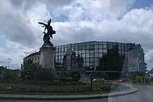 En face de la préfecture avec son kiosque à musique, sa fontaine et le Monument à l'Amitié et à l'aide américaine inauguré le .