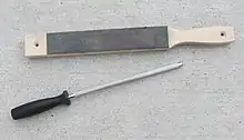 Dans les métiers de la boucherie, l'aiguiseur utilise une roue de feutre, ou bien une roue de caoutchouc ou encore un assemblage de deux roues céramiques[6].