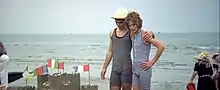 Aschenbach apprend que la famille polonaise va partir. Alors qu'il se rend sur la plage presque déserte, une dame âgée chante en russe, depuis une chaise de plage, la berceuse des Chants et danses de la mort de Moussorgski. Il porte un costume d'été clair avec une cravate rouge, il boite et il est si affaibli qu'il doit s'appuyer sur un jeune employé de l'hôtel. Assis dans la chaise longue, épuisé et les bras ballants, il observe une dernière fois le garçon tandis que la couleur de ses cheveux teints coule sur son visage échauffé. Inquiet, il remarque comment le jeu avec Jaschu, physiquement supérieur, dégénère. Irrité par un jet de sable de Tadzio, ce dernier l'entraîne dans un pugilat, ne le lâche pas d'une semelle et lui écrase le visage contre le sol. Après s'être un peu remis et avoir refusé un geste de réconciliation, Tadzio descend vers la mer, où le soleil se reflète, tandis que les sons enlevés de l'adagietto se font à nouveau entendre. Il patauge dans l'eau peu profonde qui s'approfondit lentement jusqu'à ce qu'il atteigne un banc de sable. Il se retourne lentement et regarde par-dessus son épaule en direction de la rive et d'Aschenbach, qui suit ses mouvements alors que sa mort se rapproche. Tadzio lève lentement le bras et pointe du doigt au loin. Aschenbach tente de se relever, mais s'écroule mort dans sa chaise longue.