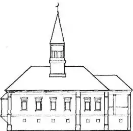 Certains plans de mosquées présentent des particularités inhabituelles. Le volume principal du bâtiment est en forme de prisme octogonal avec trois entrées, une à l'ouest, une au sud et une au nord. Cette dernière est protégée par un auvent chauffé sous lequel se trouve un espace fermé et un escalier menant au minaret. Sur la façade sud se trouve le mihrab. Au centre du toit un dôme pyramidal à huit côtés surmonté du minaret, ceint d'une galerie extérieure. Le toit est surmonté d'un croissant.