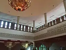 La structure est supportée par des murs porteurs en béton armée. Une vingtaine de colonnes supportent une coupole centrale apposée sur un carré. Au second niveau de la salle de prière, il y a une salle en mezzanine en forme de galerie. La coupole est maintenue par des poteaux horizontaux formant un carré supporté par des colonnes verticales[14].