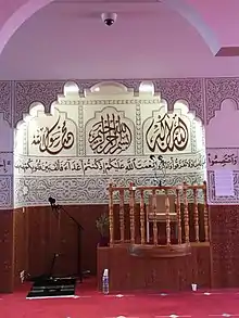La mosquée Assalam contient au sein de sa salle de prière les équipements typiques d'un lieu de culte musulman : un mihrab et un minbar. Le minbar consiste à une sorte de balcon en bois. Ces derniers sont décorés avec de la calligraphie islamique peinte.