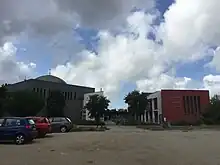 La mosquée, d'une superficie de 2 100 m2, est construite sur un terrain de 3 100 m2[4]. L'ensemble architectural comprend en réalité deux bâtiments distincts : la mosquée « proprement dite » et le « centre culturel Abdullah Al Darwish » qui abrite des salles de cours, une médiathèque, une salle polyvalente, une bibliothèque, une agence de voyages, un restaurant et trois studios permettant accueillir des conférenciers et invités de passage. Ces deux bâtiments, séparés par un patio à ciel ouvert comprenant trois bassins à fontaine, qui sont reliés entre eux par une galerie[1].
