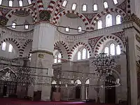 Le plan intérieur symétrique en forme de trèfle à quatre feuilles possède une aire centrale carrée, délimitée par les quatre piliers qui soutiennent la coupole, dont le volume est agrandi par quatre semi-coupoles latérales. Mais cette technique isole les quatre piliers et n'est pas encore parfaite. L'architecte Sinan ne la répètera pas dans ses constructions suivantes. Sans galerie, l'intérieur possède un décor très simple.