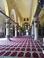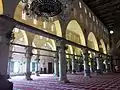 Sous la dynastie abbasside, les nefs de la mosquée changent d'orientation. Avec la construction d'al-Mahdien, en 780, quinze travées perpendiculaires au mihrab composent le lieu de prière, dont une magnifiée au centre. Un nouveau tremblement de terre, en 1033, la détruit à nouveau. La mosquée est, une fois de plus, reconstruite par le calife Ali az-Zahir. C'est cette mosquée qui subsiste encore aujourd'hui et dont les inscriptions en mosaïque évoquent le nom de son reconstructeur et donnent le nom de la mosquée (al-majsid al-aqsa, l'oratoire le plus éloigné)[43].