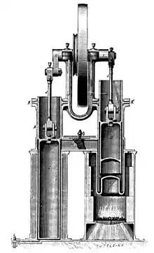 - le montage de moteurs Stirling en série permet à chaque piston de jouer le double rôle de déplaceur et de moteur : par exemple, le moteur Franchot comporte deux pistons à double effet et le moteur Siemens quatre[20][source insuffisante] ;
