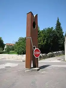 - La pince à linge géante est le fruit d'un concours « Fête en bois Mouchard Avril 1990 », remporté par Corinne Simon, étudiante à l'époque à l'École Régionale des Beaux-Arts de Besançon.