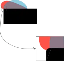 Une autre situation d'ancrage est le cas d'une surface solide dont les propriétés de mouillage changent en un point donné. La ligne de contact peut alors être piégée sur la ligne de transition entre deux états de surface et, sur cette ligne, l'angle de contact peut prendre toutes les valeurs possibles entre les valeurs attendues sur chaque surface de part et d'autre.