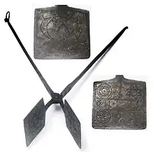 C'est en effet le même type d'outil qui a longtemps servi pour la fabrication des hosties, oublies, gaufres et gaufrettes.