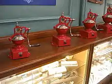 À partir de 1840, elle lance un moulin à café cubique en bois, avec mécanisme intérieur en acier.