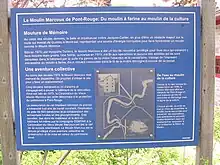 Panneau d'interprétation du Moulin Marcoux à Pont-Rouge, placé près du stationnement