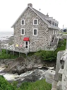 - Le moulin disposait d'une roue à godets qui mesurait 5.18 mètres (17 pieds) de diamètre. L'entrée de la dalle est toujours visible en façade. Le moulin comptait trois moulanges (paires de meules).
