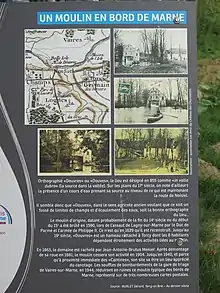 Le bâtiment du moulin est presque totalement détruit lors du bombardement de la gare de triage de Vaires-sur-Marne, pourtant distante de 2 km. Il ne reste qu'un mur avec une arche de soutènement et la maison du meunier.
