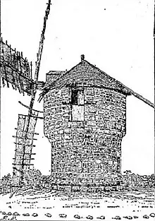 Certaines tours d'enceinte étaient surmontées de moulins à vent comme le moulin du Connétable d'Avar ou le moulin du Midi à Carcassonne [2]. Il en fut de même à Paris où le mur de Philippe Auguste fut longtemps dominé par de nombreux moulins à vent.
