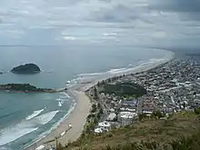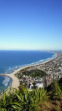 Le mont Mauao, qui se dresse au-dessus de la ville, est un important dôme de lave[3]. Selon la légende Maori, cette colline était un esclave pononga d’une montagne appelée Otanewainuku[4]. Le promontoire conique qui donne son nom à la ville mesure près de 232 mètres de haut. Il domine dès lors le pays alentour, relativement plat.