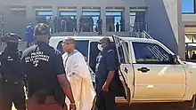 À la veille du procès des massacres du 28 septembre, Moussa Dadis Camara est placé sous mandat de dépôt et déféré à la Maison centrale de Conakry[48]. Il doit rester incarcéré le temps du procès au même titre que Toumba Diakité car leurs demandes de remise en liberté ont été rejetées[49].