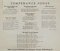 Le mouvement de la tempérance est un ensemble d'associations, de ligues religieuses ou non, dont la mission est de s'opposer à la consommation d'alcool. Son fondement est souvent d'ordre religieux ou moral : la plupart des mouvements du XXe siècle en Occident sont également associés au mouvement féministe[1], l'alcool étant souvent la cause de violences conjugales et absorbant une part substantielle des revenus des familles à bas revenus.