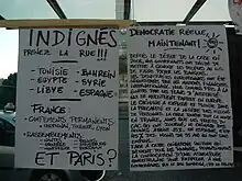 - Le Parisien, « Les Indignés tentent de conquérir la banlieue », Le Parisien, (lire en ligne, consulté le ).