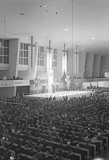 Réunion officielle du Mouvement populaire patriotique en au hall d'exposition d'Helsinki[2].