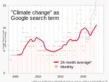 Le mouvement pour le climat est un mouvement social mondial qui vise à faire pression sur les gouvernements et l'industrie afin qu'ils prennent des mesures (également appelées « action climatique ») s'attaquant aux causes et impacts du changement climatique. Les organisations non gouvernementales environnementales se sont engagées dans un activisme climatique important depuis la fin des années 1980 et au début des années 1990, lorsqu'elles cherchaient à influencer la Convention-cadre des Nations Unies sur les changements climatiques (CCNUCC)[1].