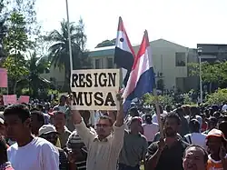 Le , le gouvernement de Said Musa a présenté son budget pour 2005-2006. Celui-ci prévoit une augmentation des taxes appliquées sur un grand nombre d'activités commerciales et de produits de base, dont une hausse de 11 % de la taxe sur la vente de biens immobiliers, une autre de 5 % concernant les institutions financières, une augmentation de 8 % sur le tabac et de 100 % sur le rhum. Bien que le gouvernement annonce que ces augmentations sont comparables à celle appliquées en 1998 sous le précédent gouvernement du Parti démocratique uni (UDP), ces taxes viennent s'ajouter à des années de frustration, ressentie par le peuple de Belize face aux erreurs de gestion financières présumées et aux corruptions menées par le Parti populaire uni (PUP)[réf. nécessaire]. Cela déclenche des protestations devant l'Assemblée nationale le 15 janvier, dont des confrontations violentes entre les manifestants et la police. Les manifestations se sont poursuivies toute la semaine.