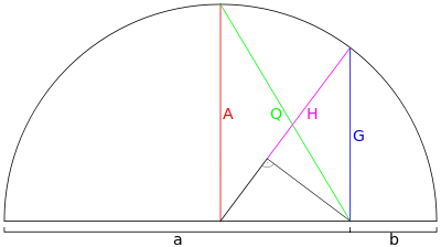 En mathématiques, les trois moyennes pythagoriciennes sont la moyenne arithmétique (A), la moyenne géométrique (G) et la moyenne harmonique (H). Ces moyennes ont été étudiées avec proportions par les Pythagoriciens et des générations suivantes de mathématiciens grecs[1] de par leur importance en géométrie et en musique.
