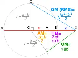 - (en) Cet article est partiellement ou en totalité issu de l’article de Wikipédia en anglais intitulé « Pythagorean means » (voir la liste des auteurs).