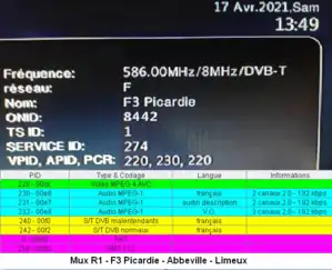 - « DVBT DVBT2 Bitrate Monitoring R1-ABBEVILLE-AMIENS DTT France Regions », sur www.digitalbitrate.com (consulté le )
