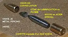 - FMC flat : Full Metal Case ; balle à tête plate utilisé plus pour le tir en stand que pour la chasse, moins onéreuse et moins lourde que sa grande sœur.
