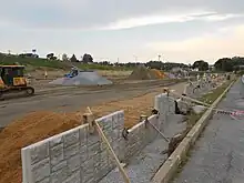 Le mur de soutènement en béton armé, également appelé mur cantilever, est constitué d'un voile de béton armé encastré dans une semelle également en béton armé, formant généralement une structure en forme de T renversé ou de L. L'avant de la semelle, côté aval, est appelé patin et l'arrière, côté terre, est appelé talon. Le talon peut être pourvu d'une bêche pour éviter le glissement[2]. Des variantes peuvent inclure des contreforts côté aval ou amont, l'usage de pieux ou des tirants d'ancrage[1]. La structure peut soit être coulée en place, soit être préfabriquée, soit comprendre des éléments préfabriqués et coulés en place[1].