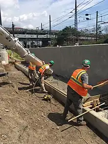 La paroi préfabriquée utilise la même méthodologie, cependant ce sont des panneaux préfabriqués verticaux qui sont descendus dans les tranchées, plutôt que des armatures puis du béton. Les panneaux sont scellés par un coulis de ciment et généralement ancrées ou butonnées[2].